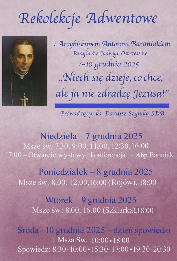Rekolekcje odbędą się w Parafii św. Jadwigi Ostrzeszów